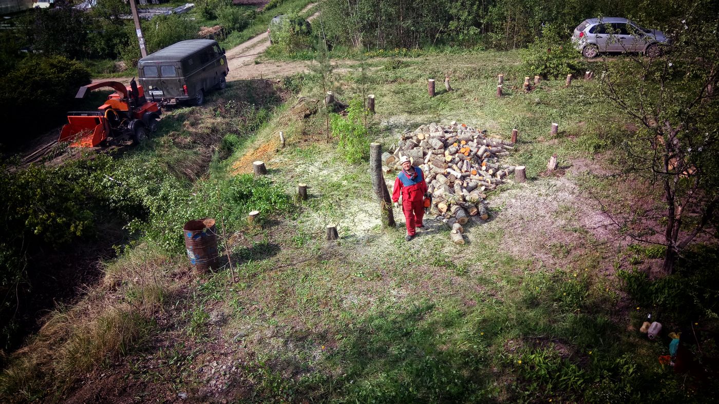 При подготовке участка к строительству, помимо валки деревьев и корчевания пней, мы можем измельчить ветки, разобрасть старые строения, вывезти порубочные остатки. Расчистка и подготовка участка к продаже - это мы тоже делаем.